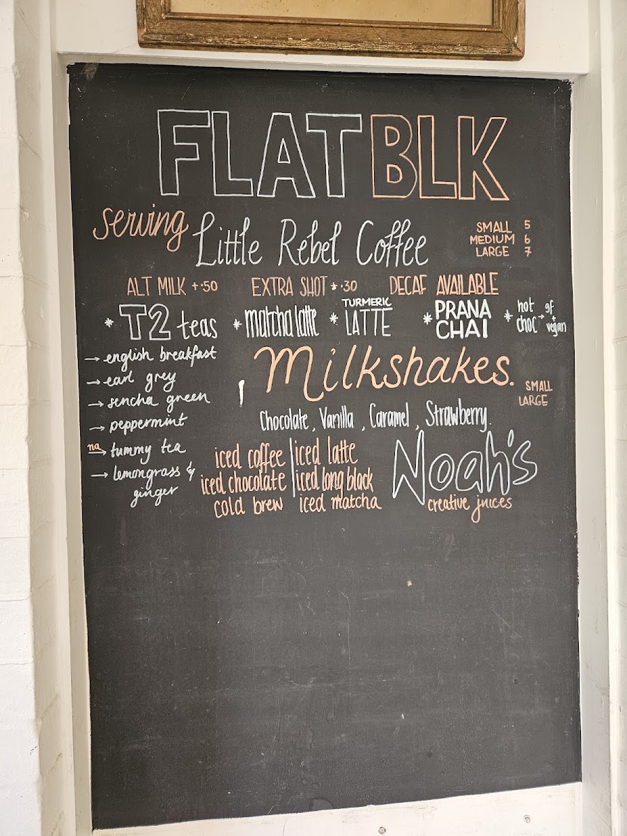 Hot Drinks: The hot beverage selection features espresso-based coffees such as Flat White, Latte, Cappuccino, Long Black, Mocha, and Chai variants. There are also options like Hot Chocolate and Soy Latte, catering to different preferences.